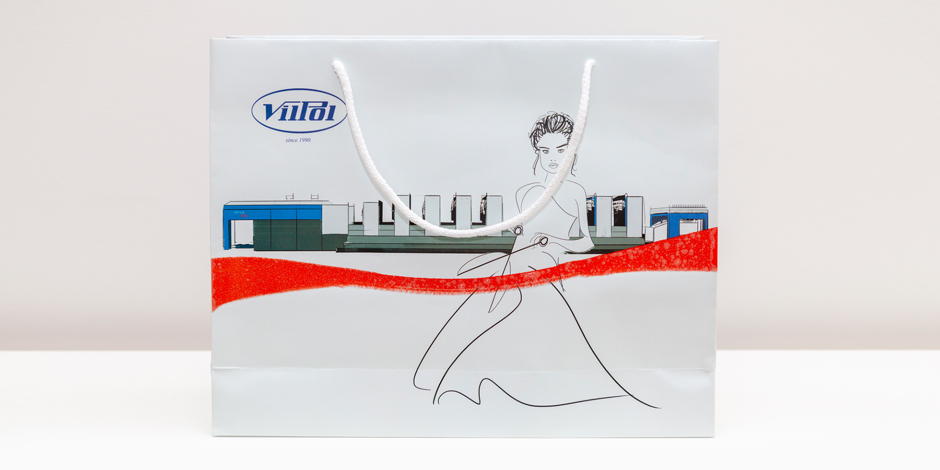 Dedicated two-sided bag refined with brocade